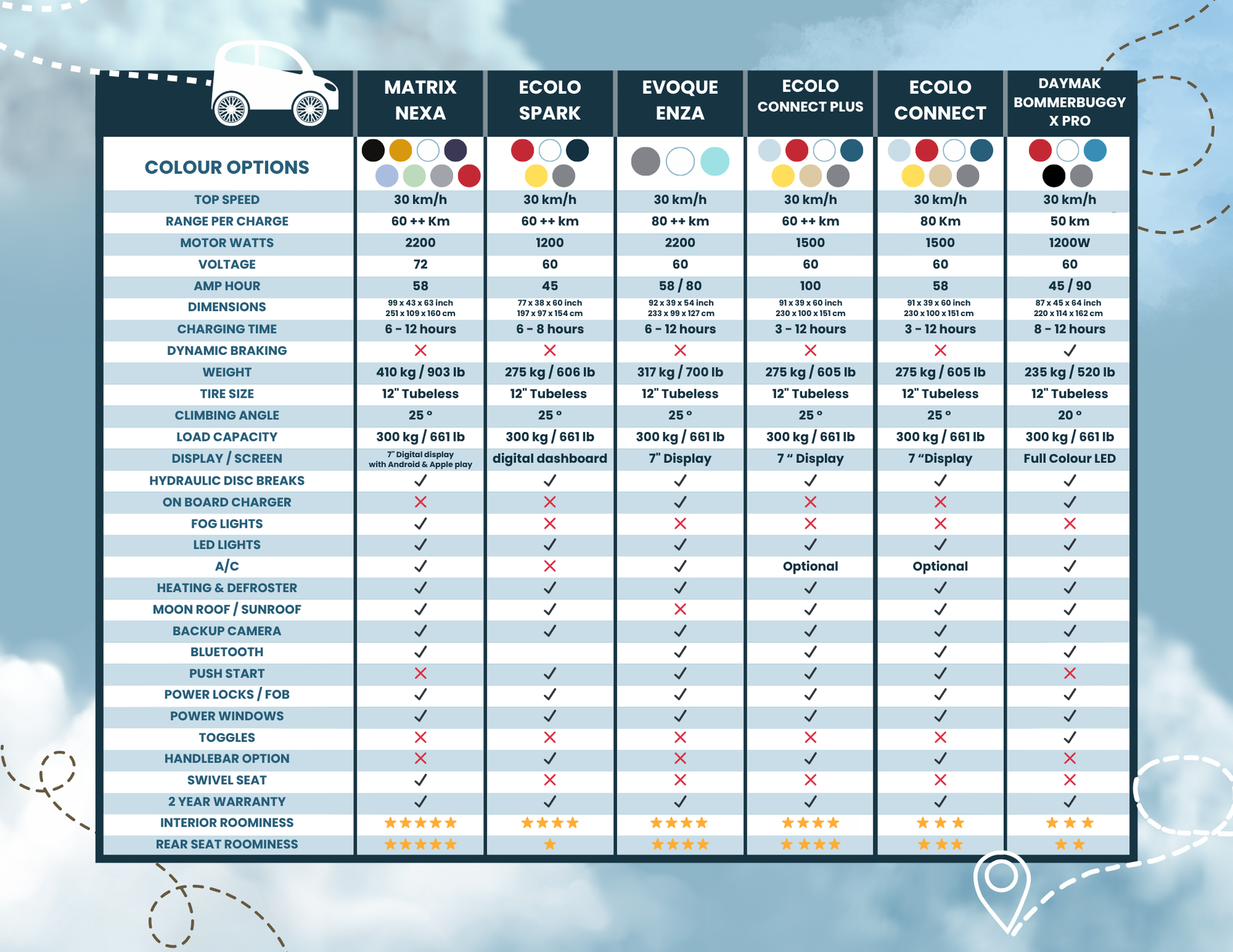 The Boomerbuggy X Pro now comes with power windows! With the press of a button easily roll down your windows or push open the sun roof to get some fresh air and embrace the outdoors.